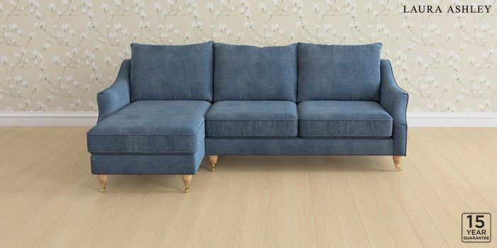 6.12.1 Buy Beverley by Laura Ashley Medium Sofa Chaise - Left Hand Edwin Chenille Seaspray Blue Low Brass Castor - Light Oak from the Next UK online shop Click here to use our accessible website