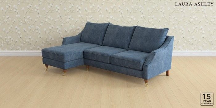 6.12.1 Buy Beverley by Laura Ashley Medium Sofa Chaise - Left Hand Edwin Chenille Seaspray Blue Low Brass Castor - Teak from the Next UK online shop Click here to use our accessible website
