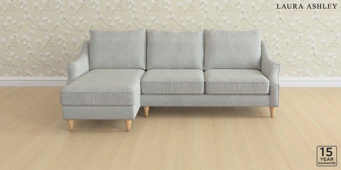 6.12.1 Buy Beverley by Laura Ashley Medium Sofa Chaise - Left Hand Edwin Chenille Silver Grey Low Turned - Light Oak from the Next UK online shop Click here to use our accessible website
