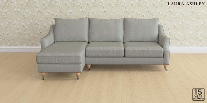 6.12.1 Buy Beverley by Laura Ashley Medium Sofa Chaise - Left Hand Edwin Herringbone Pale Steel Grey Low Chrome Castor - Light Oak from the Next UK online shop Click here to use our accessible website