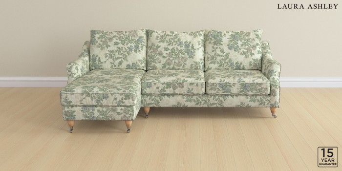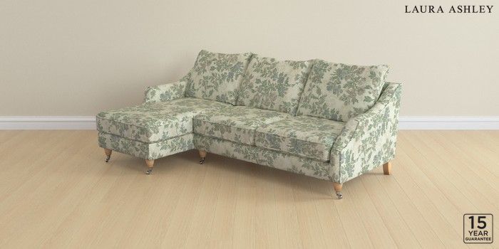 6.12.1 Buy Beverley by Laura Ashley Medium Sofa Chaise - Left Hand Ellerby Seaspray Blue Low Chrome Castor - Light Oak from the Next UK online shop Click here to use our accessible website
