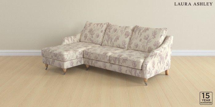 7.3.1 Buy Beverley by Laura Ashley Medium Sofa Chaise - Left Hand Gosford Weave Dusky Plum Purple Low Chrome Castor - Light Oak from the Next UK online shop Click here to use our accessible website