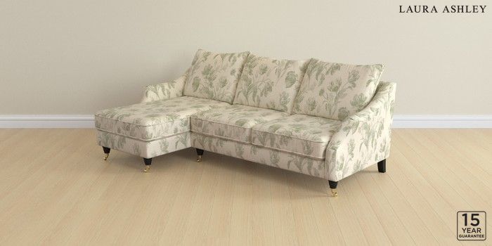 7.3.1 Buy Beverley by Laura Ashley Medium Sofa Chaise - Left Hand Gosford Weave Sage Green Low Brass Castor - Black from the Next UK online shop Click here to use our accessible website
