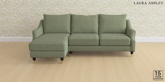 6.12.1 Buy Beverley by Laura Ashley Medium Sofa Chaise - Left Hand Harley Moss Green Low Brass Castor - Black from the Next UK online shop Click here to use our accessible website