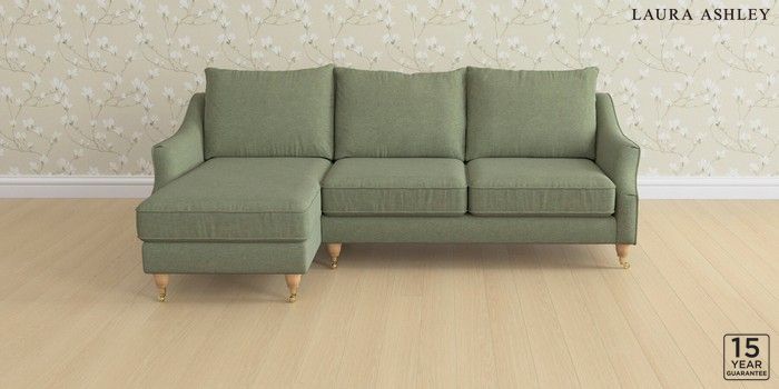 6.12.1 Buy Beverley by Laura Ashley Medium Sofa Chaise - Left Hand Harley Moss Green Low Brass Castor - Light Oak from the Next UK online shop Click here to use our accessible website