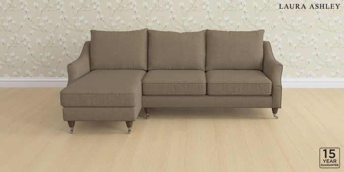 6.12.1 Buy Beverley by Laura Ashley Medium Sofa Chaise - Left Hand Harley Truffle Natural Low Chrome Castor - Chestnut from the Next UK online shop Click here to use our accessible website