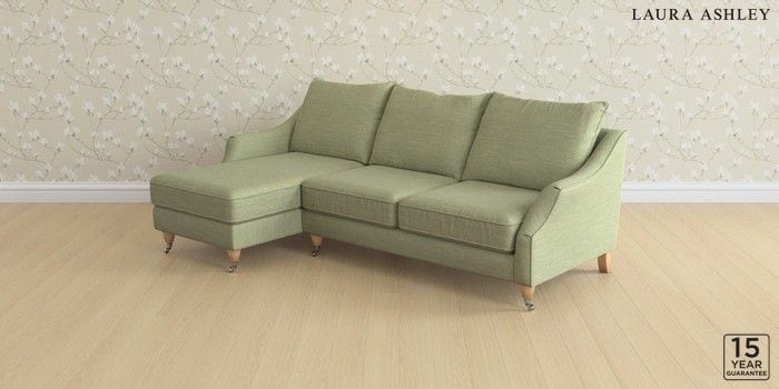 7.2.10 Buy Beverley by Laura Ashley Medium Sofa Chaise - Left Hand Kinsham Hedgerow Green Low Chrome Castor - Light Oak from the Next UK online shop Click here to use our accessible website