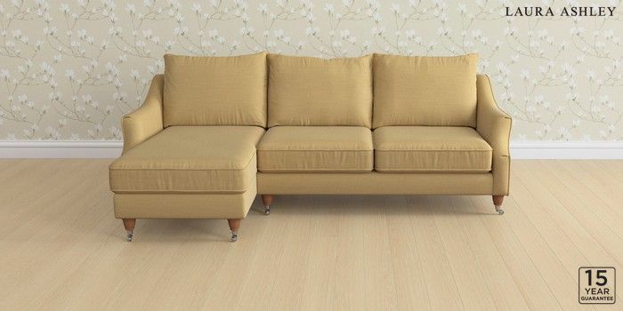 6.12.1 Buy Beverley by Laura Ashley Medium Sofa Chaise - Left Hand Kinsham Ochre Yellow Low Chrome Castor - Teak from the Next UK online shop Click here to use our accessible website