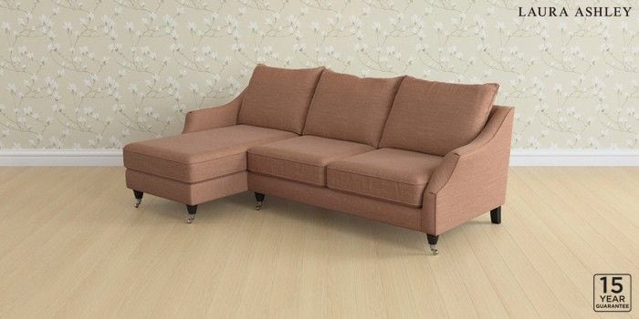 7.2.10 Buy Beverley by Laura Ashley Medium Sofa Chaise - Left Hand Kinsham Rust Orange Low Chrome Castor - Black from the Next UK online shop Click here to use our accessible website