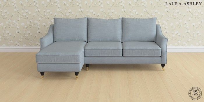 6.12.1 Buy Beverley by Laura Ashley Medium Sofa Chaise - Left Hand Kinsham Seaspray Blue Low Brass Castor - Black from the Next UK online shop Click here to use our accessible website