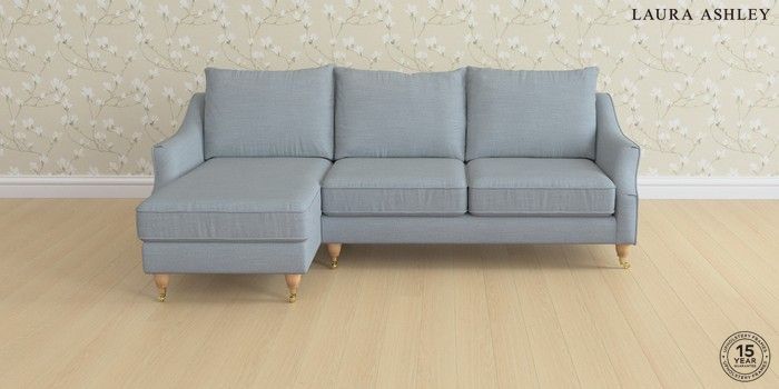 6.12.1 Buy Beverley by Laura Ashley Medium Sofa Chaise - Left Hand Kinsham Seaspray Blue Low Brass Castor - Light Oak from the Next UK online shop Click here to use our accessible website