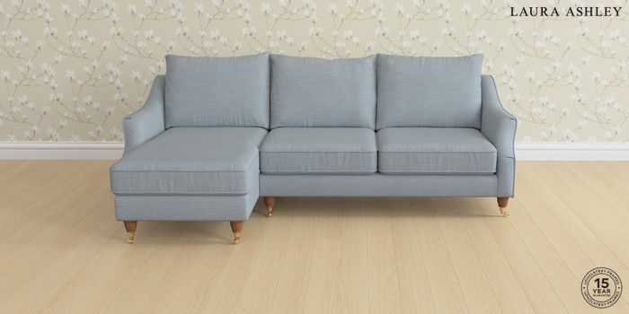 6.12.1 Buy Beverley by Laura Ashley Medium Sofa Chaise - Left Hand Kinsham Seaspray Blue Low Brass Castor - Teak from the Next UK online shop Click here to use our accessible website