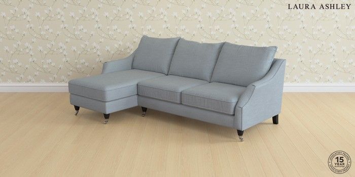 7.2.6 Buy Beverley by Laura Ashley Medium Sofa Chaise - Left Hand Kinsham Seaspray Blue Low Chrome Castor - Black from the Next UK online shop Click here to use our accessible website