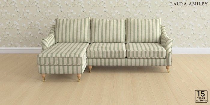 6.12.1 Buy Beverley by Laura Ashley Medium Sofa Chaise - Left Hand Kinsham Stripe Hedgerow Green Low Brass Castor - Light Oak from the Next UK online shop Click here to use our accessible website