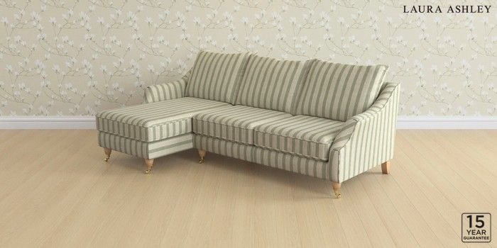 7.2.10 Buy Beverley by Laura Ashley Medium Sofa Chaise - Left Hand Kinsham Stripe Hedgerow Green Low Brass Castor - Light Oak from the Next UK online shop Click here to use our accessible website