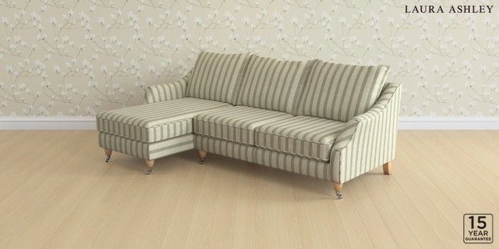 7.2.10 Buy Beverley by Laura Ashley Medium Sofa Chaise - Left Hand Kinsham Stripe Hedgerow Green Low Chrome Castor - Light Oak from the Next UK online shop Click here to use our accessible website