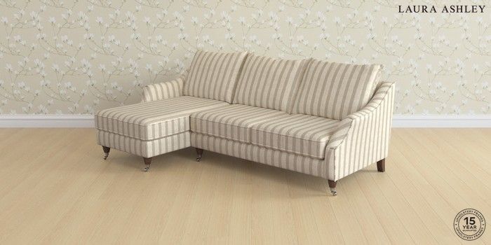 7.2.6 Buy Beverley by Laura Ashley Medium Sofa Chaise - Left Hand Kinsham Stripe Natural Low Chrome Castor - Chestnut from the Next UK online shop Click here to use our accessible website