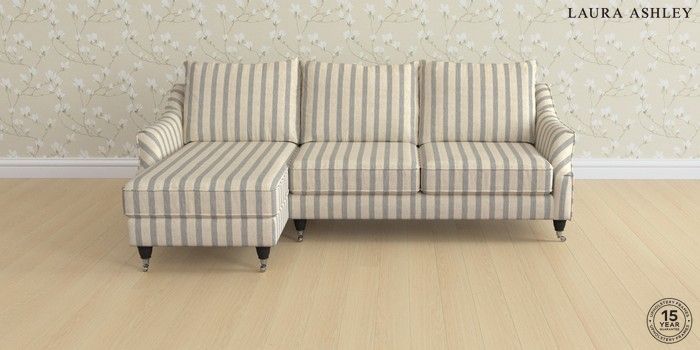 6.12.1 Buy Beverley by Laura Ashley Medium Sofa Chaise - Left Hand Kinsham Stripe Seaspray Blue Low Chrome Castor - Black from the Next UK online shop Click here to use our accessible website