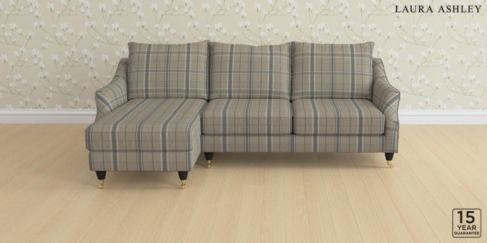 6.12.1 Buy Beverley by Laura Ashley Medium Sofa Chaise - Left Hand Longstowe Check French Grey Low Brass Castor - Black from the Next UK online shop Click here to use our accessible website