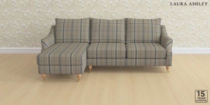 6.12.1 Buy Beverley by Laura Ashley Medium Sofa Chaise - Left Hand Longstowe Check French Grey Low Brass Castor - Light Oak from the Next UK online shop Click here to use our accessible website