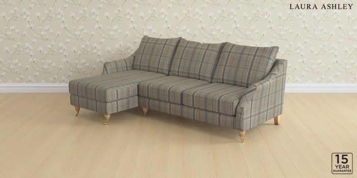 7.3.1 Buy Beverley by Laura Ashley Medium Sofa Chaise - Left Hand Longstowe Check French Grey Low Brass Castor - Light Oak from the Next UK online shop Click here to use our accessible website