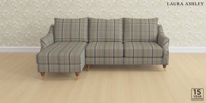 6.12.1 Buy Beverley by Laura Ashley Medium Sofa Chaise - Left Hand Longstowe Check French Grey Low Brass Castor - Teak from the Next UK online shop Click here to use our accessible website