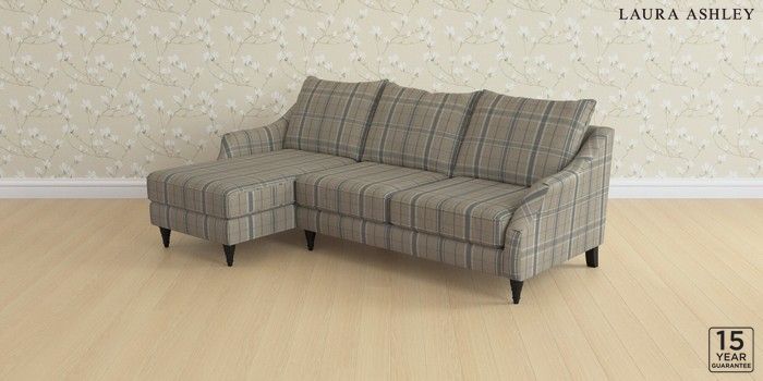 7.2.10 Buy Beverley by Laura Ashley Medium Sofa Chaise - Left Hand Longstowe Check French Grey Low Turned - Black from the Next UK online shop Click here to use our accessible website