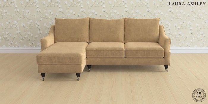 6.12.1 Buy Beverley by Laura Ashley Medium Sofa Chaise - Left Hand Lundar Chenille Caramel Natural Low Chrome Castor - Black from the Next UK online shop Click here to use our accessible website