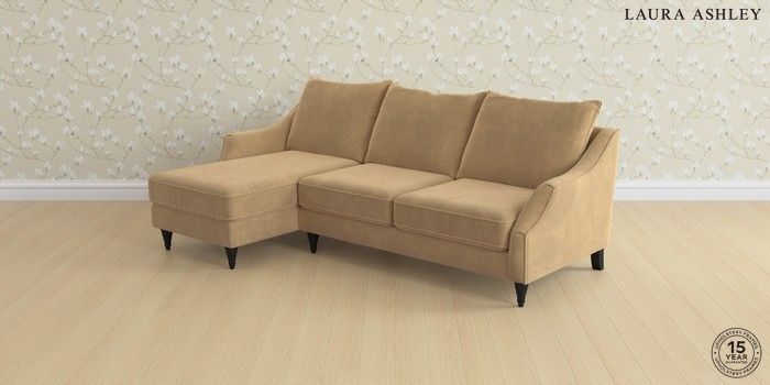 7.2.6 Buy Beverley by Laura Ashley Medium Sofa Chaise - Left Hand Lundar Chenille Caramel Natural Low Turned - Black from the Next UK online shop Click here to use our accessible website