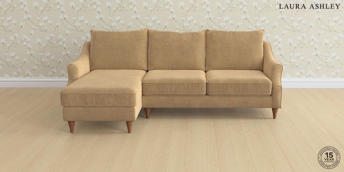 6.12.1 Buy Beverley by Laura Ashley Medium Sofa Chaise - Left Hand Lundar Chenille Caramel Natural Low Turned - Teak from the Next UK online shop Click here to use our accessible website