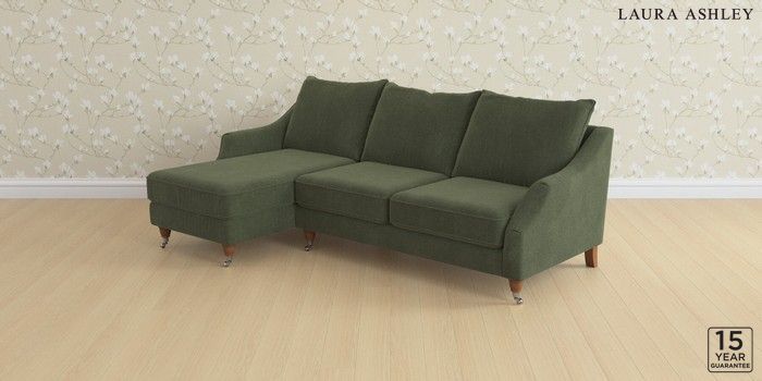 7.2.10 Buy Beverley by Laura Ashley Medium Sofa Chaise - Left Hand Lundar Chenille Ivy Green Low Chrome Castor - Teak from the Next UK online shop Click here to use our accessible website