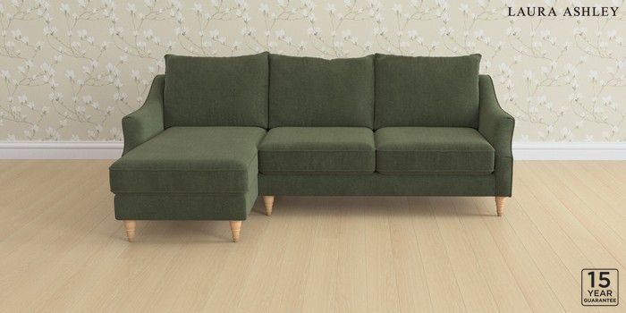 6.12.1 Buy Beverley by Laura Ashley Medium Sofa Chaise - Left Hand Lundar Chenille Ivy Green Low Turned - Light Oak from the Next UK online shop Click here to use our accessible website