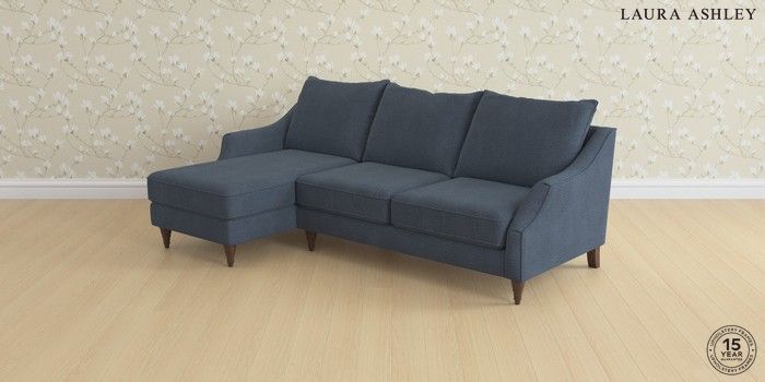 7.2.6 Buy Beverley by Laura Ashley Medium Sofa Chaise - Left Hand Lundar Chenille Navy Blue Low Turned - Chestnut from the Next UK online shop Click here to use our accessible website