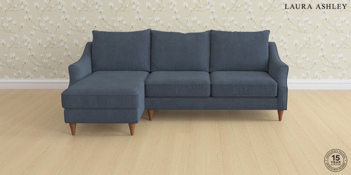 6.12.1 Buy Beverley by Laura Ashley Medium Sofa Chaise - Left Hand Lundar Chenille Navy Blue Low Turned - Teak from the Next UK online shop Click here to use our accessible website