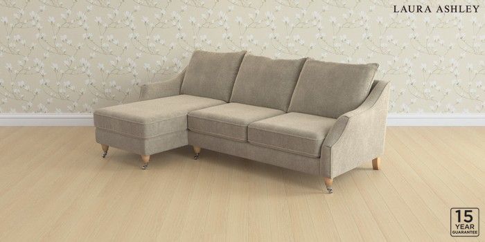 7.2.10 Buy Beverley by Laura Ashley Medium Sofa Chaise - Left Hand Lundar Chenille Truffle Natural Low Chrome Castor - Light Oak from the Next UK online shop Click here to use our accessible website