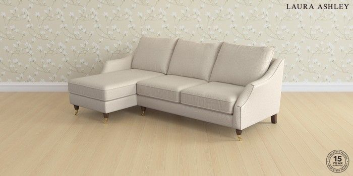 7.2.6 Buy Beverley by Laura Ashley Medium Sofa Chaise - Left Hand Melbreak Geo Light Natural Low Brass Castor - Chestnut from the Next UK online shop Click here to use our accessible website