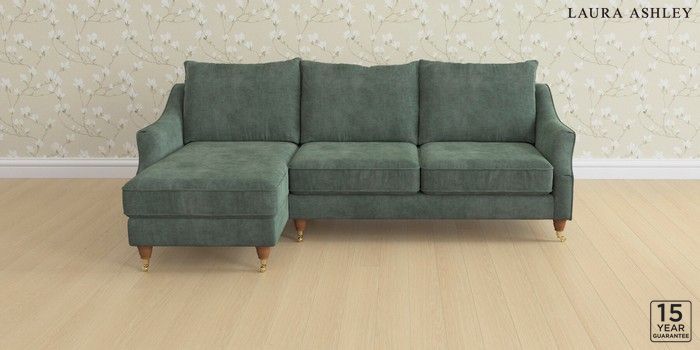 6.12.1 Buy Beverley by Laura Ashley Medium Sofa Chaise - Left Hand Nantmor Fern Green Low Brass Castor - Teak from the Next UK online shop Click here to use our accessible website