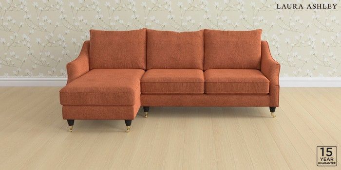 6.12.1 Buy Beverley by Laura Ashley Medium Sofa Chaise - Left Hand Nantmor Rust Orange Low Brass Castor - Black from the Next UK online shop Click here to use our accessible website
