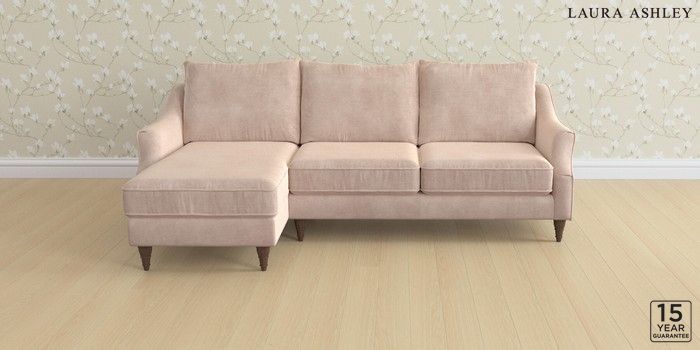 6.12.1 Buy Beverley by Laura Ashley Medium Sofa Chaise - Left Hand Orla Chalk Pink Low Turned - Chestnut from the Next UK online shop Click here to use our accessible website