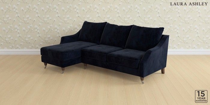 6.12.1 Buy Beverley by Laura Ashley Medium Sofa Chaise - Left Hand Orla Midnight Navy Low Chrome Castor - Chestnut from the Next UK online shop Click here to use our accessible website