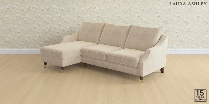 6.12.1 Buy Beverley by Laura Ashley Medium Sofa Chaise - Left Hand Orla Oyster Natural Low Brass Castor - Chestnut from the Next UK online shop Click here to use our accessible website