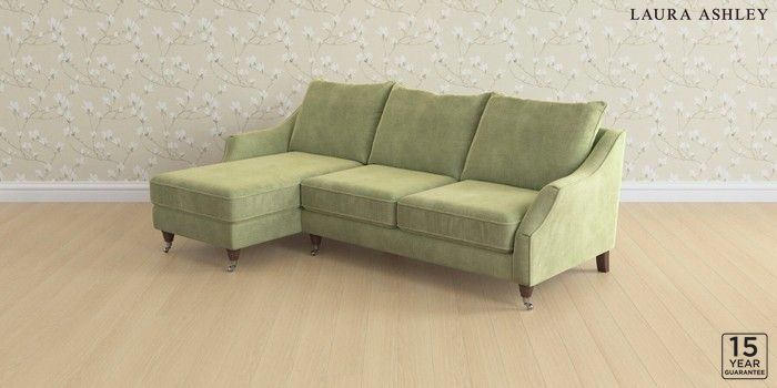 7.2.10 Buy Beverley by Laura Ashley Medium Sofa Chaise - Left Hand Orla Pale Hedgerow Green Low Chrome Castor - Chestnut from the Next UK online shop Click here to use our accessible website