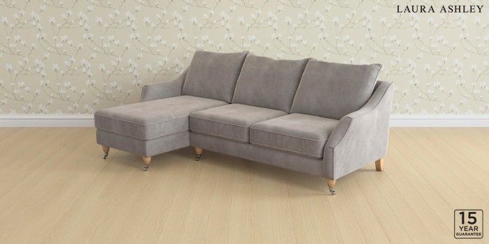6.12.1 Buy Beverley by Laura Ashley Medium Sofa Chaise - Left Hand Orla Pale Steel Grey Low Chrome Castor - Light Oak from the Next UK online shop Click here to use our accessible website