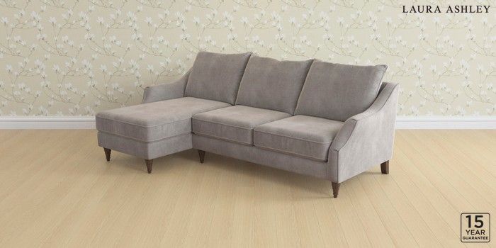 6.12.1 Buy Beverley by Laura Ashley Medium Sofa Chaise - Left Hand Orla Pale Steel Grey Low Turned - Chestnut from the Next UK online shop Click here to use our accessible website