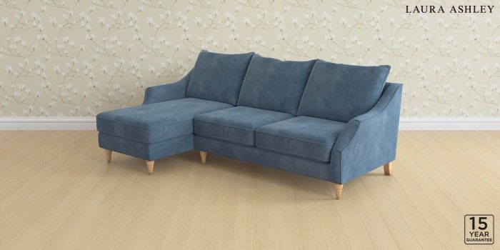 6.12.1 Buy Beverley by Laura Ashley Medium Sofa Chaise - Left Hand Orla Seaspray Blue Low Turned - Light Oak from the Next UK online shop Click here to use our accessible website
