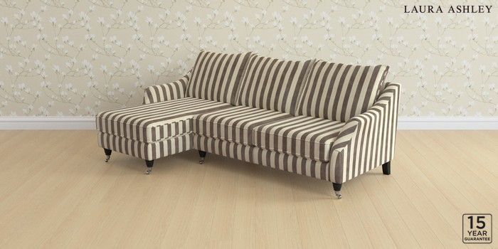 7.3.1 Buy Beverley by Laura Ashley Medium Sofa Chaise - Left Hand Orla Stripe Dark Truffle Natural Low Chrome Castor - Black from the Next UK online shop Click here to use our accessible website