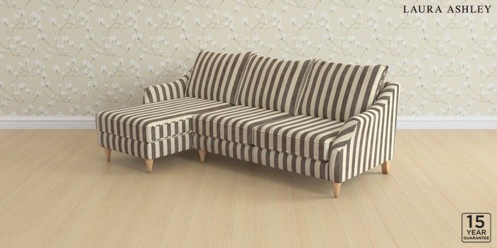 7.2.10 Buy Beverley by Laura Ashley Medium Sofa Chaise - Left Hand Orla Stripe Dark Truffle Natural Low Turned - Light Oak from the Next UK online shop Click here to use our accessible website