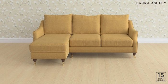 6.12.1 Buy Beverley by Laura Ashley Medium Sofa Chaise - Left Hand Peyton Ochre Yellow Low Brass Castor - Chestnut from the Next UK online shop Click here to use our accessible website