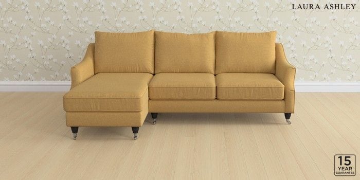 6.12.1 Buy Beverley by Laura Ashley Medium Sofa Chaise - Left Hand Peyton Ochre Yellow Low Chrome Castor - Black from the Next UK online shop Click here to use our accessible website