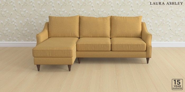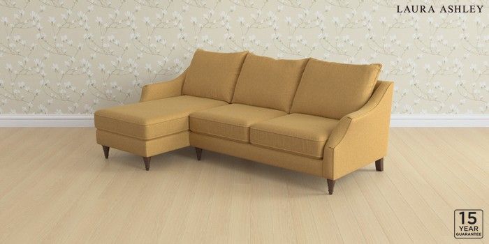 6.12.1 Buy Beverley by Laura Ashley Medium Sofa Chaise - Left Hand Peyton Ochre Yellow Low Turned - Chestnut from the Next UK online shop Click here to use our accessible website